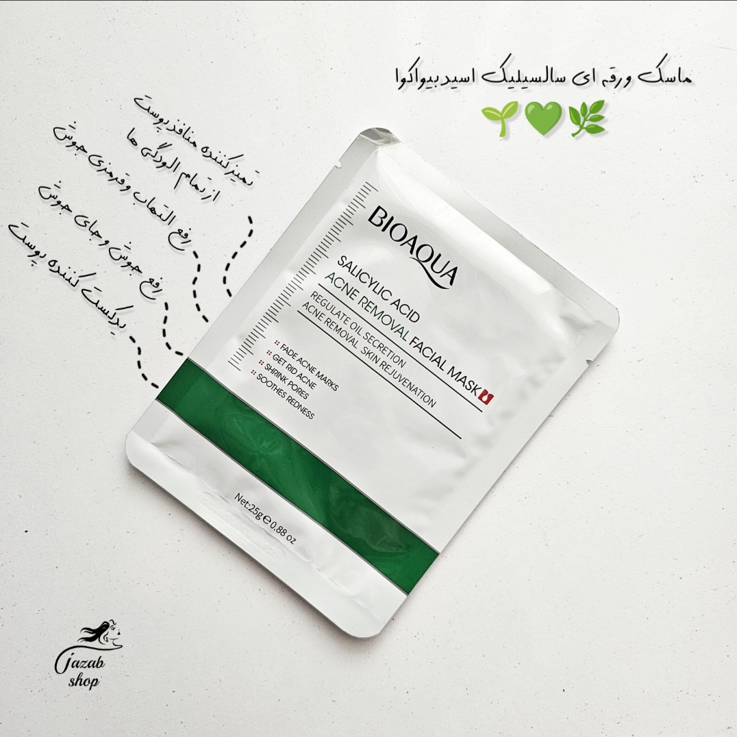 ماسک ورقه ای ضد جوش سالسیلیک اسید بیوآکوا، حاوی درصد مناسبی از سالسیلیک اسید می باشد که با خاصیت آنتی باکتریال، مانع ایجاد جوش های جدید می شود، و همچینن سبب ترمیم جای جوش و بافت پوست می شود و التهاب و قرمزی پوست را کاهش میدهد. و گزینه ی بسیار مناسبی برای لک های تیره روی پوست می باشد. این ماسک همچنین سبب پاکسازی منافذ پوست می گردد و منافذ پوستی کاهش می یابند